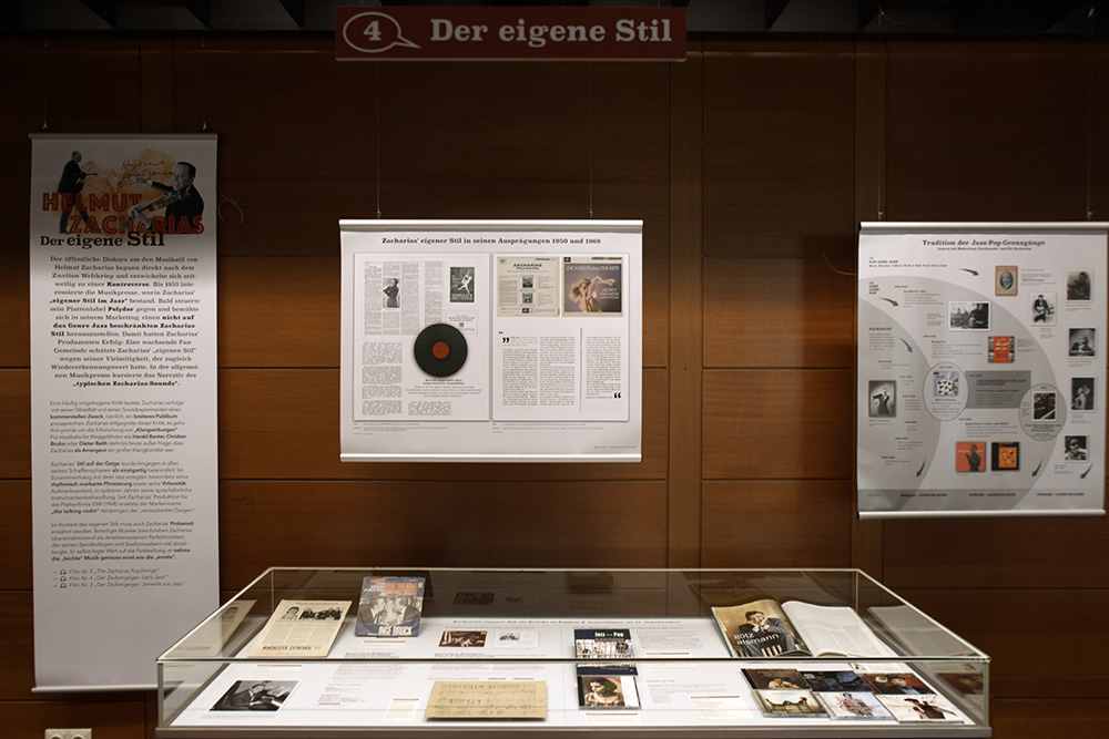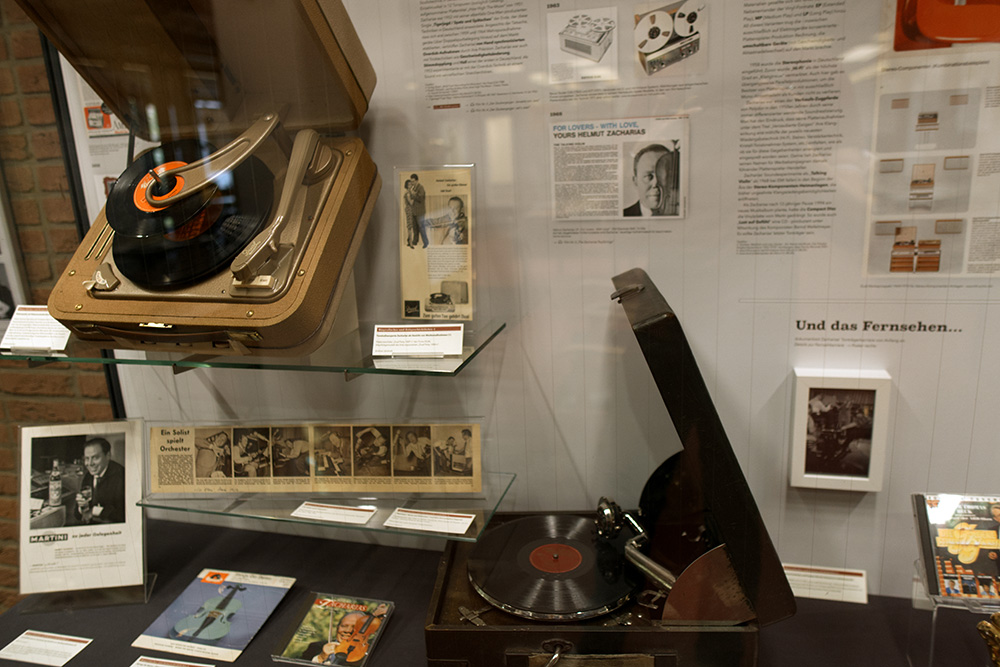 In zwei Multimedia-Stationen können Ton- und Videosequenzen angesteuert werden. Als Exponate dienen Noten, Fotos, Plattenhüllen, Zeitschriftenartikel, Konzertplakate, Briefe, Preisverleihungsdokumente u.v.m.